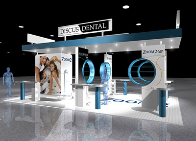 This quirky and colourful exhibition stand is great for grabbing customers’ attention, and then discussing sales in private. The four alcove areas are secluded enough for you to enter into your sales pitch, but open enough to see what’s going on elsewhere on your stand. The bright lights and colours really showcase the products, and entice customers into seeing what else is on offer. - Discus Dental