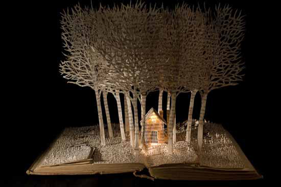 Su Blackwell is pre-occupied with fairytales and you can see such landscapes popping up (no pun intended) frequently in her work. She’s another paper artist who has been picked up by some big brands. She recently did a prominent Nicole Farhi window display and campaigns for Pilsner Urquell and O2.