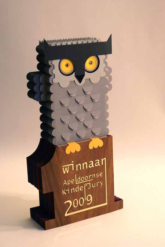Sigrid Spier makes cute 3D creatures by stacking layers of paper. In the image above, you can see an award she’s made by using this clever technique.