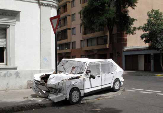 Chilean artist, Don Lucho, blurs the lines between illustration, sculpture and reality with his life-size paper creations, built from recycled material found on the streets. He is famous for producing ‘Casa de Carton’, a complete apartment made of card, white paint and black marker.