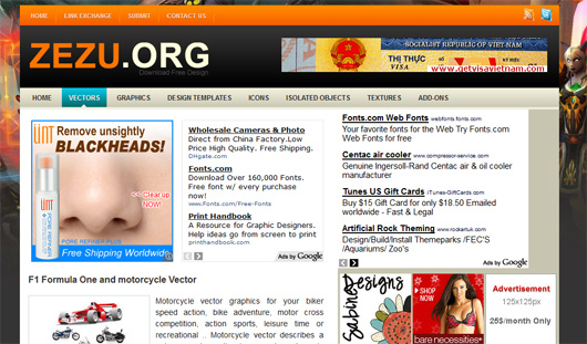 Yet another resource worth checking is Zezu, which, though not as comprehensive as some of the websites listed above, features some arresting vectors mostly in the EPS format. The icons and textures available here are especially interesting.