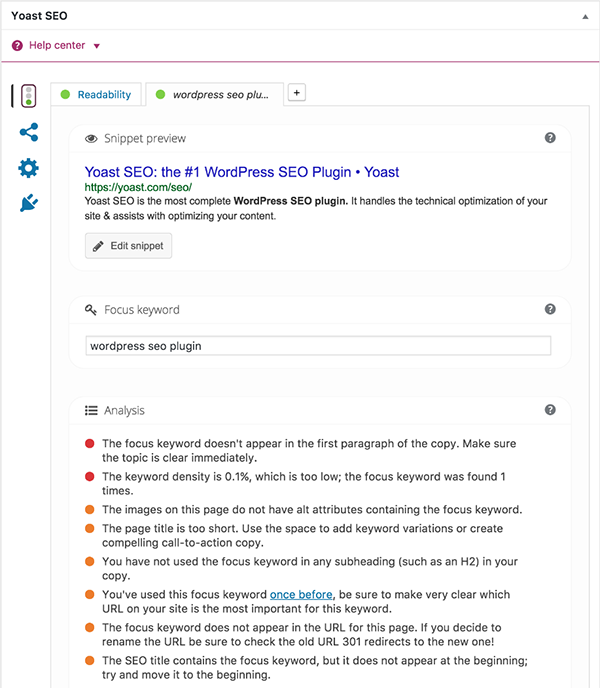 Today Yoast SEO is considering the best WordPress SEO plugin and used by the majority of webmasters.