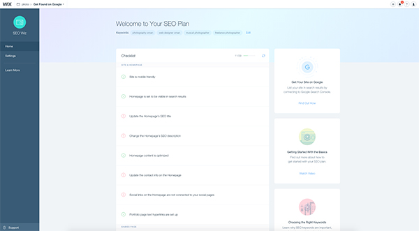 - The Wix SEO Wiz guides you through a step by step process, making it very easy for you to see and determine the things that are important to your site.