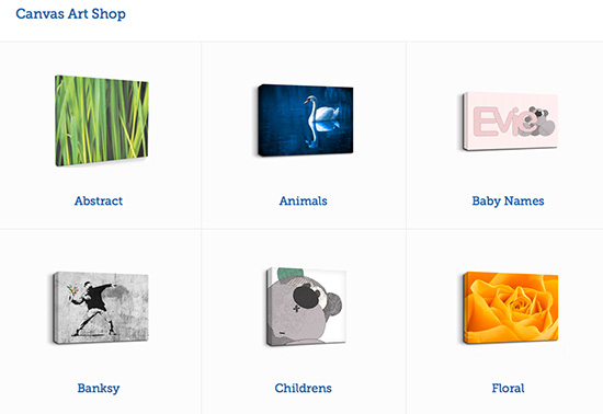 You can choose to have a single photo canvas or photo montage from Photo in Canvas