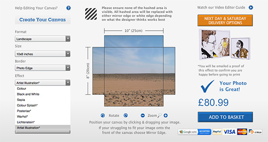 Indeed this site is so user-friendly because after clicking your specific photo to be transformed, you can easily choose the size, style and position with the use of their canvas editor. Editing your favorite photo has never been so cool with the use of filters and effects that are provided in this site in order to produce a magnificently printed canvas.