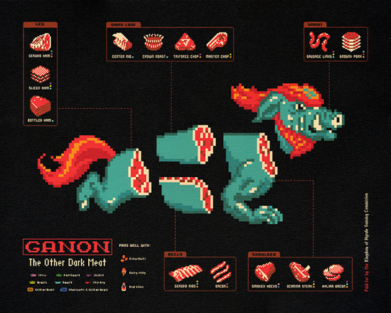 Videogame Characters on a Platter: Jude Buffum’s 8-bit Butcher Diagrams